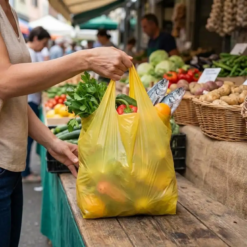Một trong những ứng dụng phổ biến và quan trọng nhất của túi nilon có quai zin là đựng thức ăn và thực phẩm. Đặc biệt, loại túi màu trắng, không mùi, được sản xuất từ hạt nhựa PE nguyên sinh đảm bảo an toàn vệ sinh thực phẩm, là lựa chọn hàng đầu cho mục đích này. Từ các sạp rau củ quả trong chợ, các quầy thịt cá tươi sống đến các tiệm bánh, cửa hàng đồ khô, túi nilon có quai zin đều đóng vai trò là bao bì trực tiếp, giúp bảo vệ thực phẩm khỏi bụi bẩn và thuận tiện cho người mua mang về.